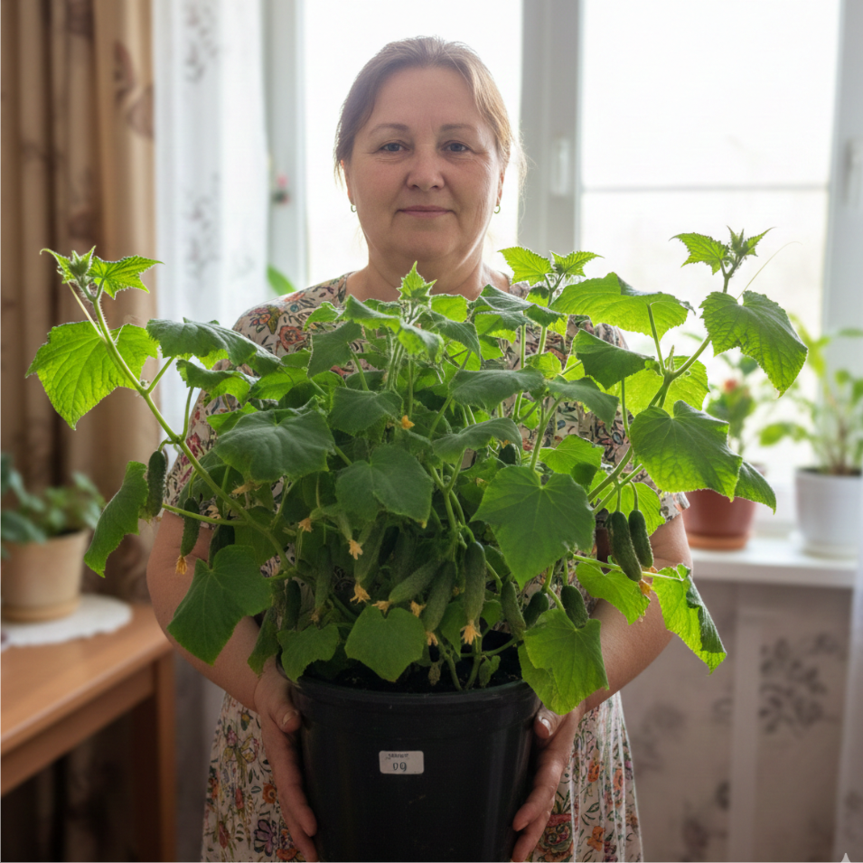 У субстраті є оптимальний запас поживних елементів — саме та кількість, яка потрібна огірку на стартовому етапі. Завдяки цьому кущ не стресує після пересилки, швидко адаптується до квартири та починає рости й формувати зав’язі буквально після того, як ти поставиш його на підвіконня.